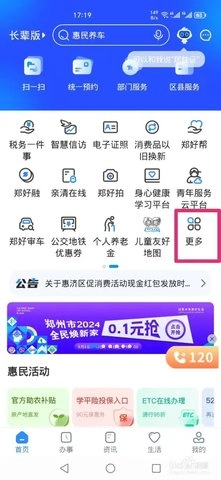 第一步:打开郑好办APP,点击【更多】,如图所示