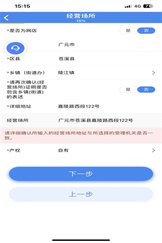 (4)填写个体工商户基本信息后点击下一步填写经营场所信息。