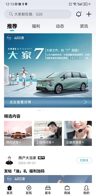 1、接下来讲讲手机APP的使用方法,这是上汽大通APP安装完成后的界面。在本站下载APP,完成安装并注册。