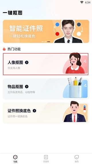 打开软件后,依据自身需求展开选择,比如选择人像抠图,点击进入此功能。