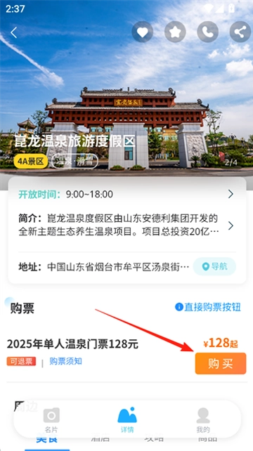 05、进入景区详情页面后,点击“购卖”进入商品详情