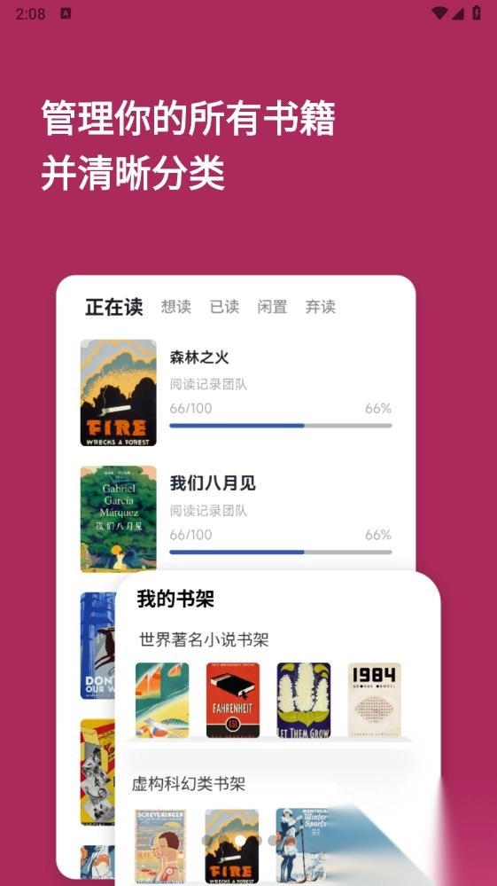 通过标签、阅读状态归类书籍,还可以自定义设置书架分类自己的爱书;