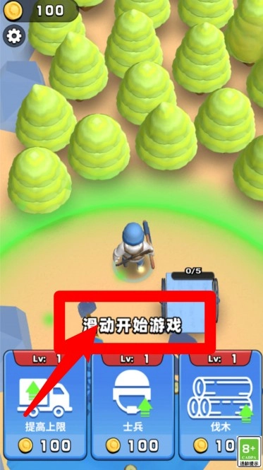 2. 滑动开启游戏:界面中央会出现“滑动开始游戏”的提示,这是新手开局的教学引导。通过滑动来控制角色移动,随后就能触发资源收集与生产的流程。