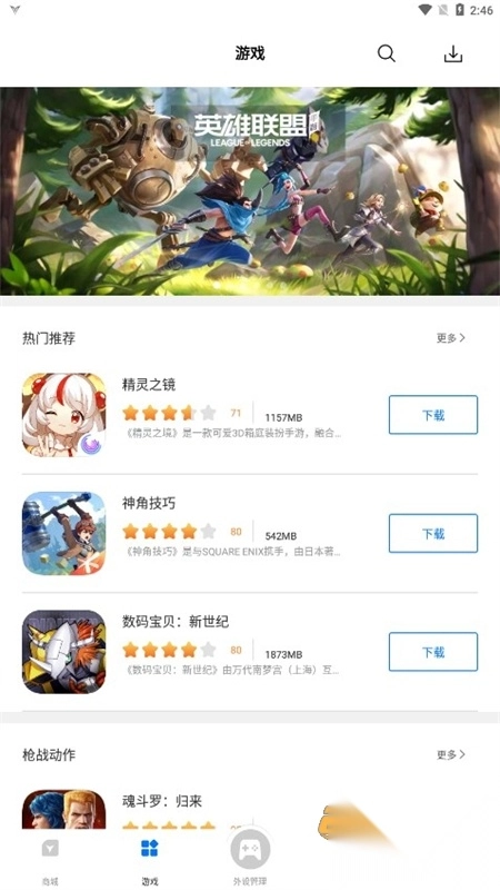 4、提供游戏分类聚合、下载管理、一键安装