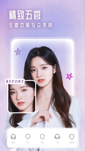 2、美颜甜甜相机作为一款相机应用,功能十分丰富,具备多项医美级别的微整形面部五官调整功能。