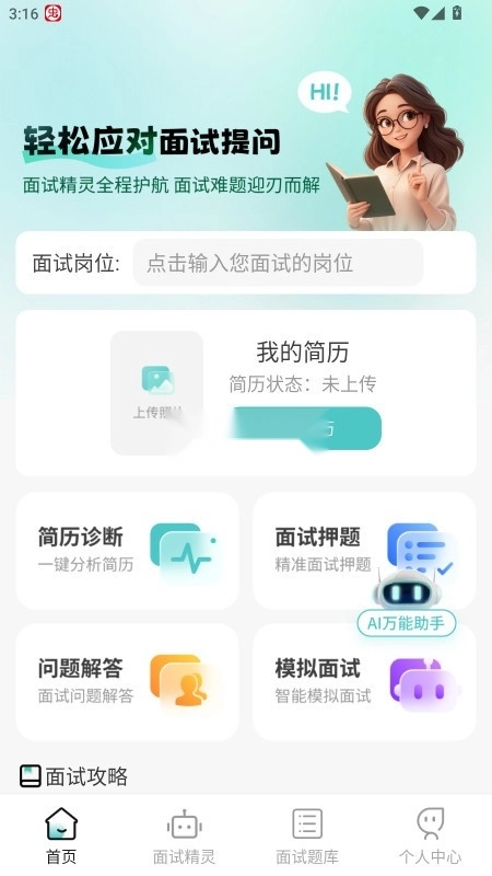 《AI面试职通app》,这是一款致力于助力求职者提升面试技巧、筹备面试并深入理解职场需求的应用程序。借助先进的人工智能技术,该应用为用户打造了一个模拟真实面试场景的平台,助力用户在正式面试前能有完备的准备。