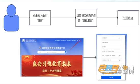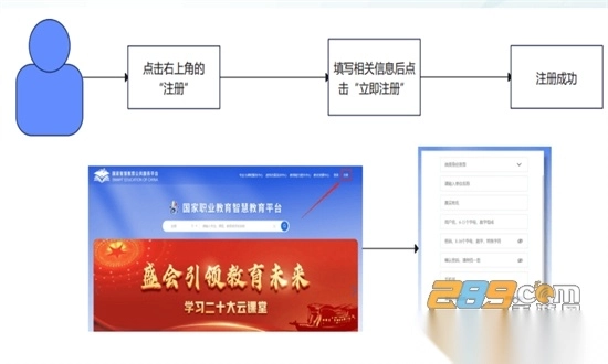 1. 打开职教平台(https://vocational.smartedu.cn ),点击左上角的“注册”按钮,接着填写相关信息完成注册。