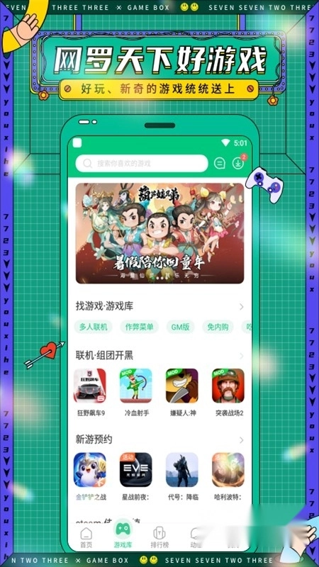 7723手游平台app手机版官方下载安装,这可是一款超好用的游戏盒子软件。它里面汇聚了MOD资源、BT版游戏、免ROOT游戏、移植游戏等海量游戏资源。借助这款软件,你能第一时间知晓各类游戏资讯、新游首发动态。而且每天都会实时更新游戏资源,充分满足大家多样化的游戏需求。不仅如此,还能在线领取礼包以及享受活动特权等。感兴趣的小伙伴们,赶紧来下载体验吧!