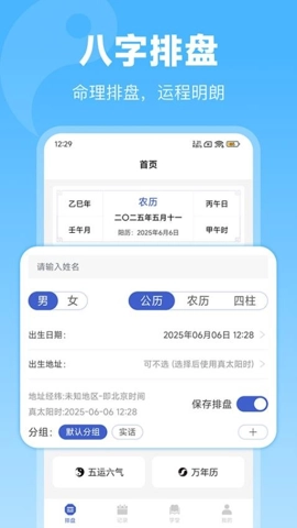 排盘宝作为一款专业的国学排盘工具,软件融合了众多功能,像专业排盘、五运六气、黄历、万年历等资讯皆涵盖其中。用户仅需录入个人基础信息,就能随时对生肖、星座以及天干地支等相关内容进行查询,还能深入剖析排盘,以便更透彻地了解自身的命理运势。其应用界面设计简约清晰,用户极易上手操作。