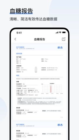 2、血糖报告能够清晰、简洁且有效地向用户传达其血糖数据,而异常提醒功能则可对血糖信息进行实时监测。