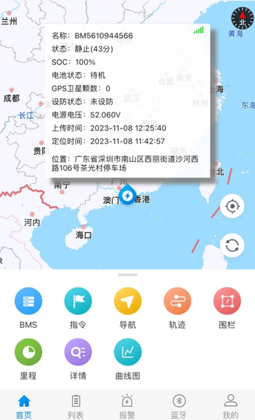 注册登录后您可以对您的设备进行定位、BMS数据查看及管理等操作,