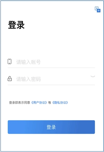 开启 APP 后,进入登录页面,在相应位置输入账号与密码完成登录操作(其中,账号通常默认是电池白色标签码;密码默认设置为 1122334455,建议您尽快修改并妥善牢记。)