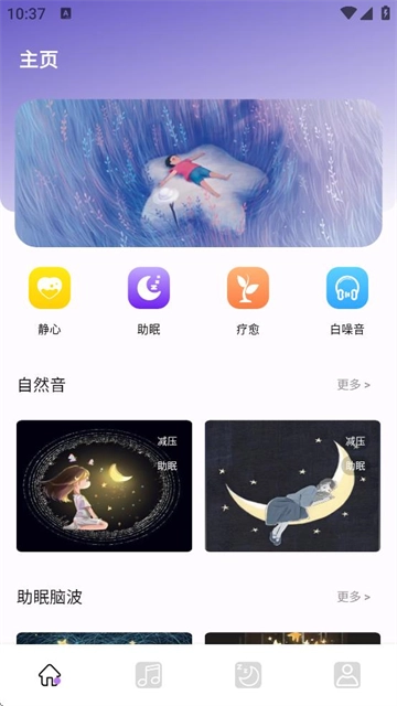 为您呈现丰富多样的音频资源,涵盖白噪音、自然音乐、催眠曲、冥想音乐、助眠脑波以及轻音乐。精心打造专业且舒适的入睡环境,让您即便在白日,也能轻松进入甜美的梦乡。