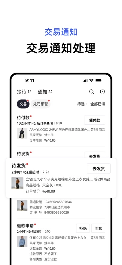4、平台通知:仅提醒交易消息与店铺违规预警通知,营销通知不再发送。