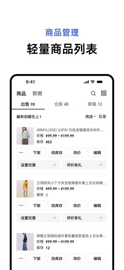 5、全新添加「商品」TAB,让商品管理以及商品数据查看变得更为便捷。