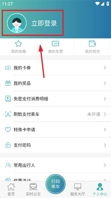 在个人中心界面点击立即登录