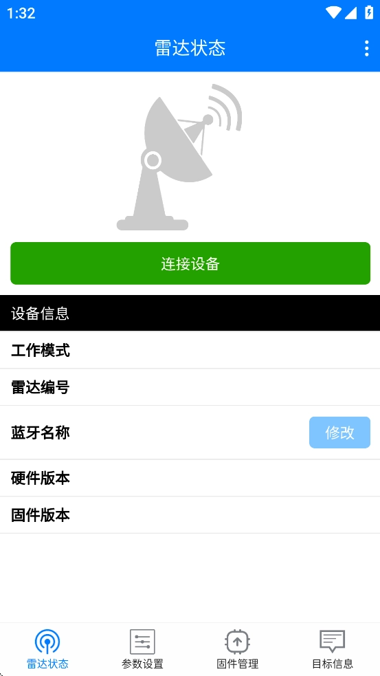 1、打开APP,进入到雷达状态页面,点击连接设备。
