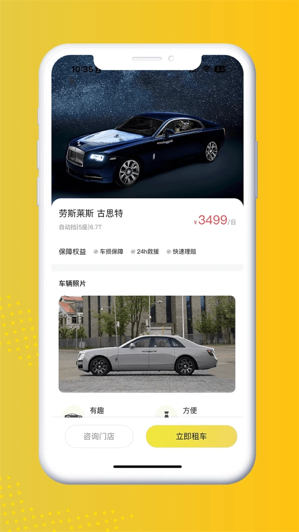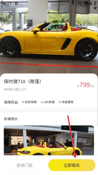 3、于车辆详情页面,确认价格等相关信息无误后,点击【立即租车】按钮,即可完成租车流程。