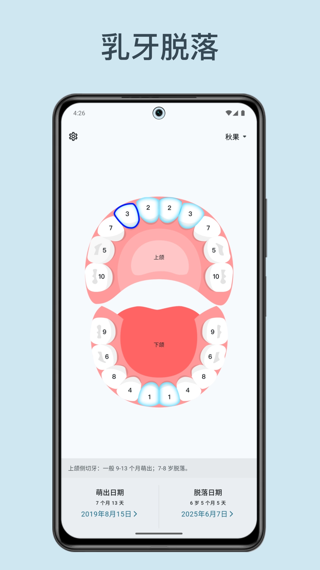 轻松记录宝宝乳牙萌出和脱落,守护宝宝口腔健康。
