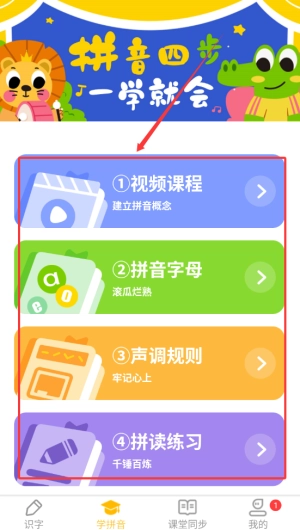 2包含23个声母、24个韵母以及16个整体认读音节的【拼音教学】视频课程。