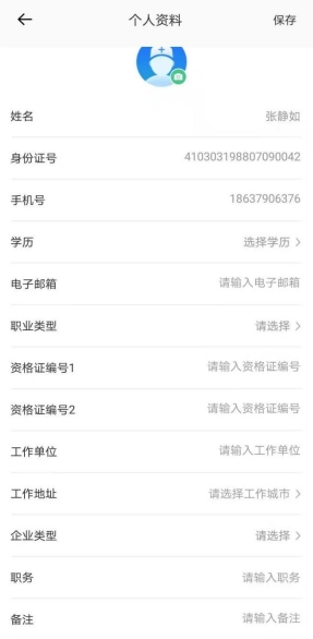 2. 依据页面要求,将个人信息填写完整,随后点击【保存】就可以了。具体情形如下图所示: