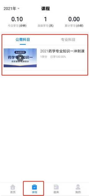 1登录之后,点击“课程”页面,随即进入课程学习,具体操作如下图所示。
