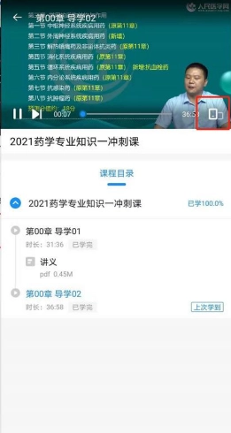 3. 在课程播放过程中,若想切换至横屏播放模式,只需点击下方的【横屏】按钮即可,具体位置如下图所示: