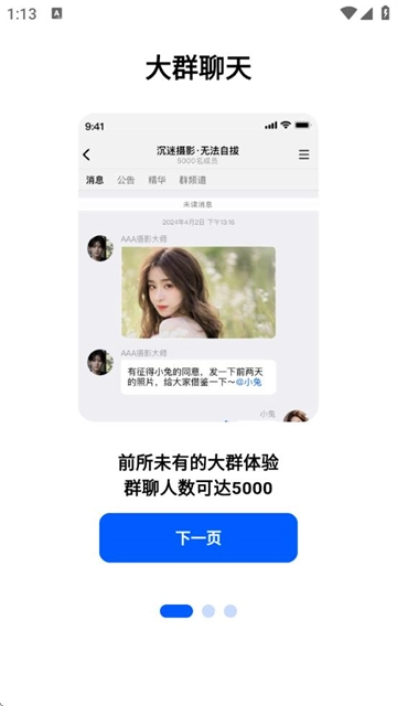 大群通讯功能:能够创建无用户数量限制的超大群聊,无论是小型团队、大型团队,还是各类社交活动,均适用。