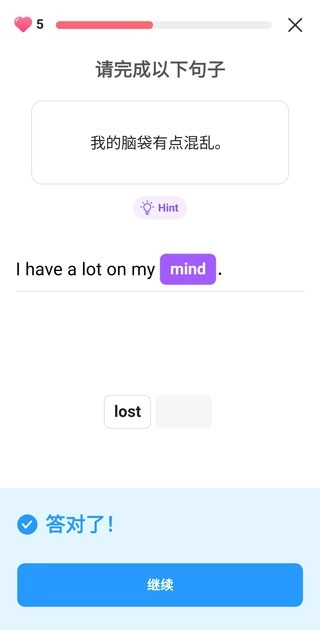 3、记住句子后,点击继续进入下一步学习。