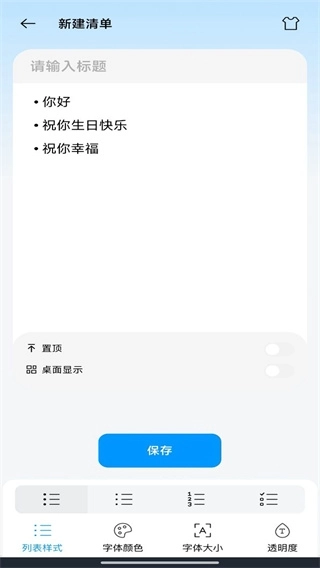 2、在所设定的列表添加功能里,具备字体大小、字体颜色、字体变换等特性,使用者能够自由地设计并记录个人列表的添加。