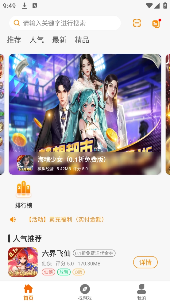 2、首页页面为玩阿基推荐了当前热门的游戏资源。