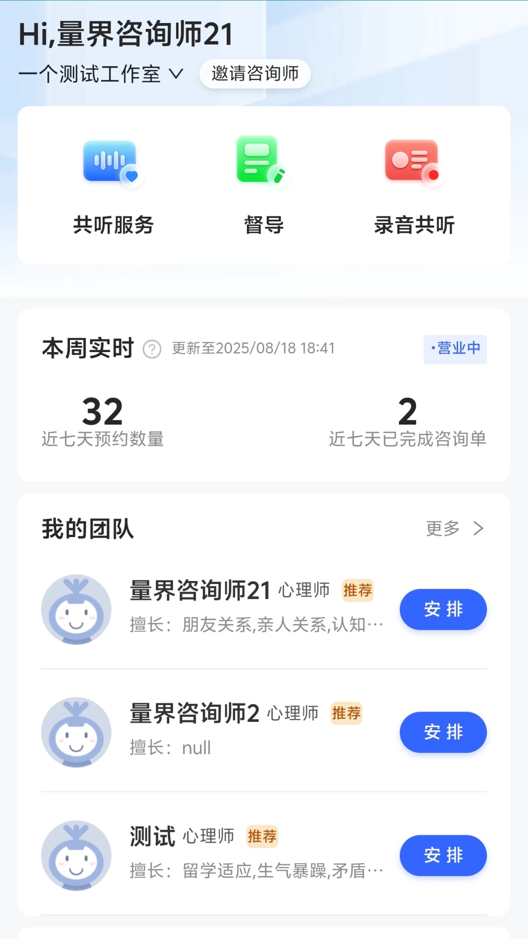 2. 咨询师进行咨询工作期间,能够开启共听服务,同时对咨询内容实施实时录音留存,以便后续回顾复盘,进而提高咨询服务质量。