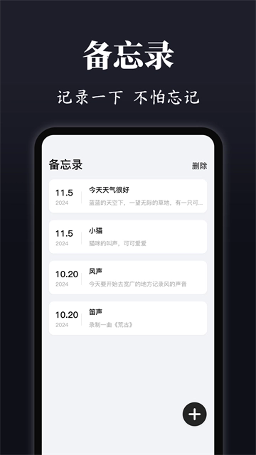 【一键录音】轻轻一点,声音瞬间精准收录,全程保持高清无损品质,不放过任何细微之处,将每一个瞬间的音频原汁原味地牢牢锁定。