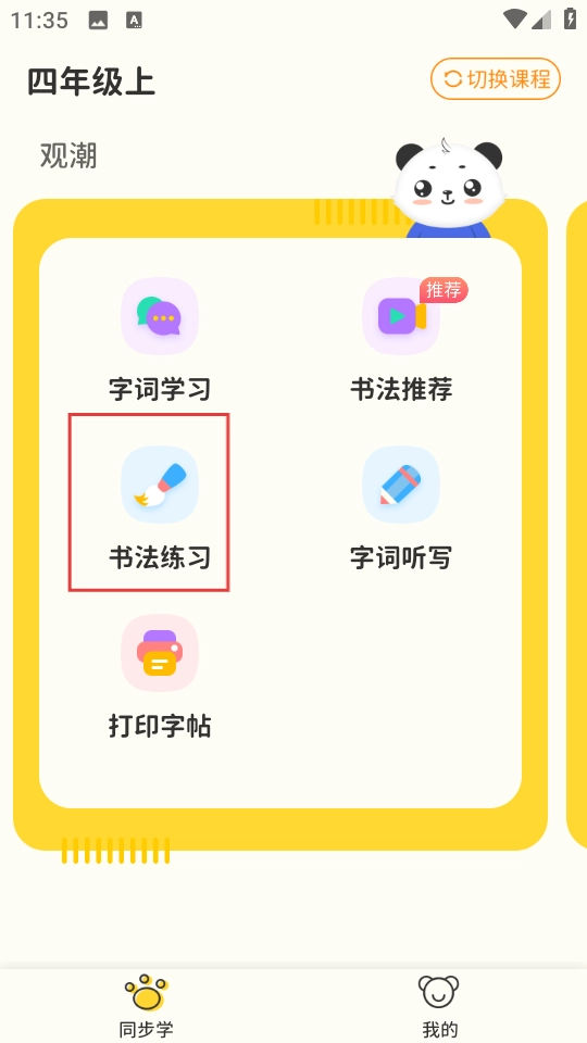 1. 于四年级上的课程页面,点击“书法练习”,即可进入书法练习界面。