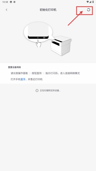 3、进入打印机初始化界面,按照指引进行操作,也能够点击右上角的图标,来完成打印机的添加。