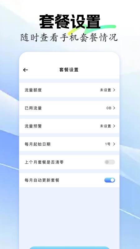 能够自动清零流量数据,便于用户高效记录每月流量数据,实现便捷管理。
