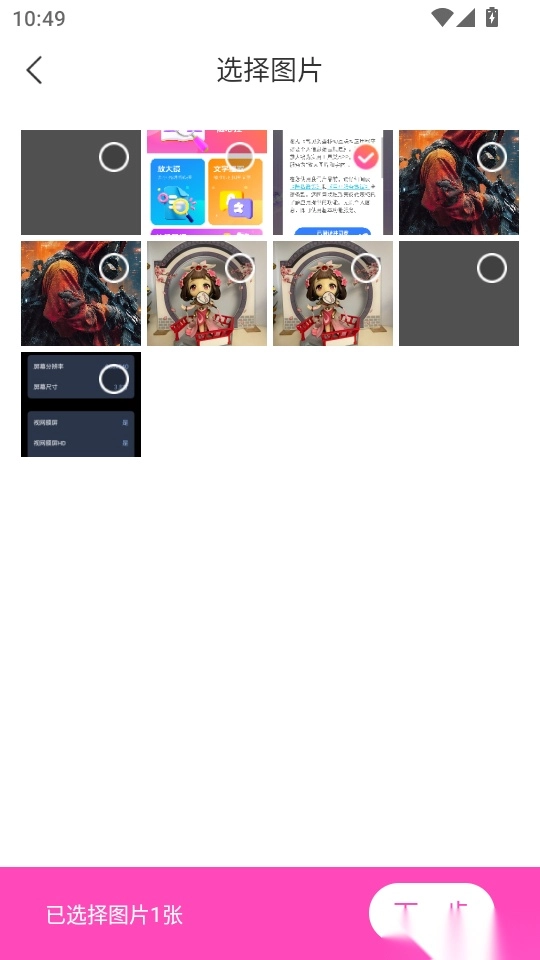 4. 在全新的界面中挑选相册图片,点击“勾选”按钮,随后点击“下一步”按钮。