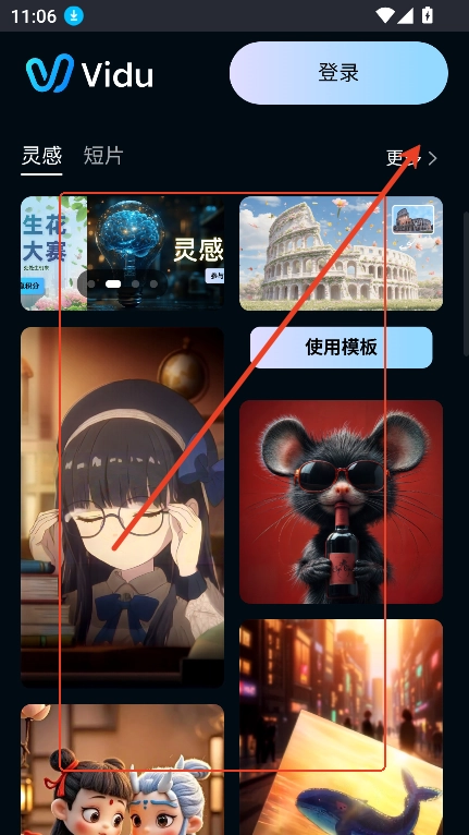 1、打开vidu ai手机版的首页,这里具备文生视频、图生视频等功能。
