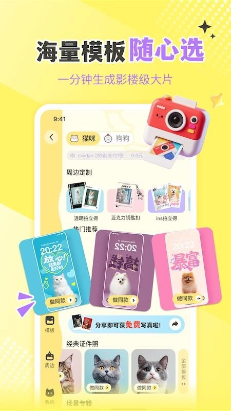 能够获取平台所提供的写真大片模板,如此一来,你便能为爱宠挑选合适的模板。