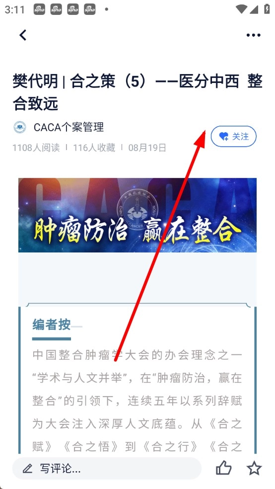 2、于文章详情页面,留意发布者名称旁边的按钮,要是按钮显示“关注”,直接点击此按钮,系统便会自动开启对该发布者账号的关注操作。