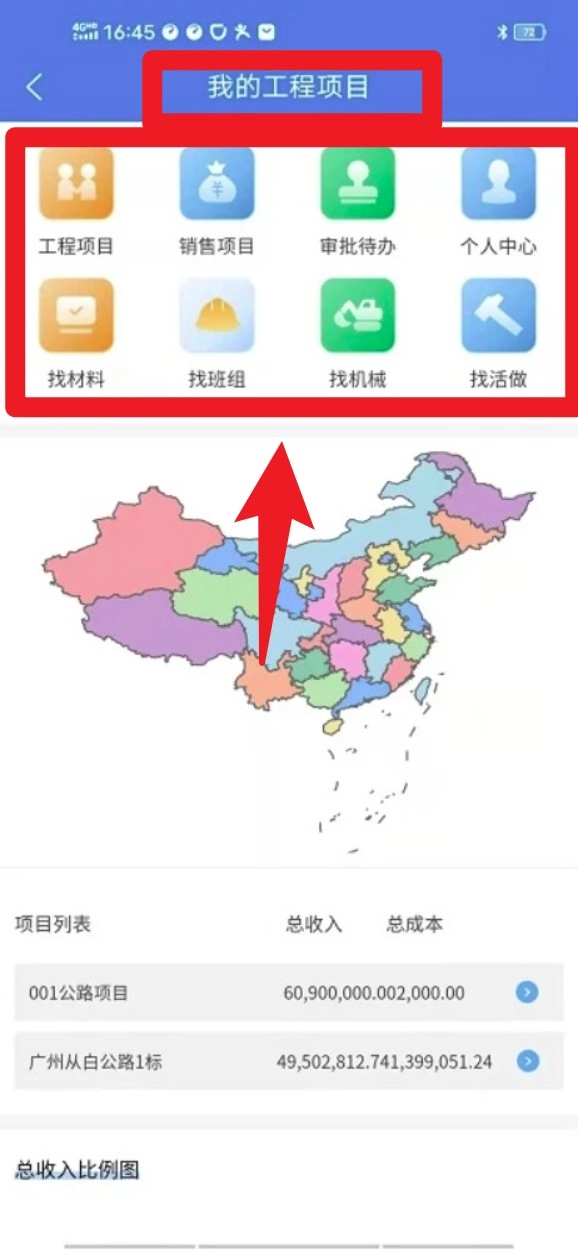 1. 进入首页,点击「我的工程项目」,就能查看当前账号下所有项目的收支状况以及管理模块入口。