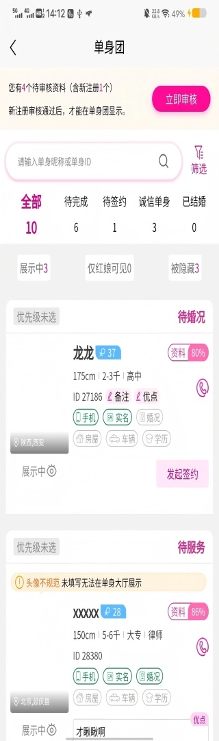 1. 开启已安装完成的脱单会,只有通过四大认证方可使用。