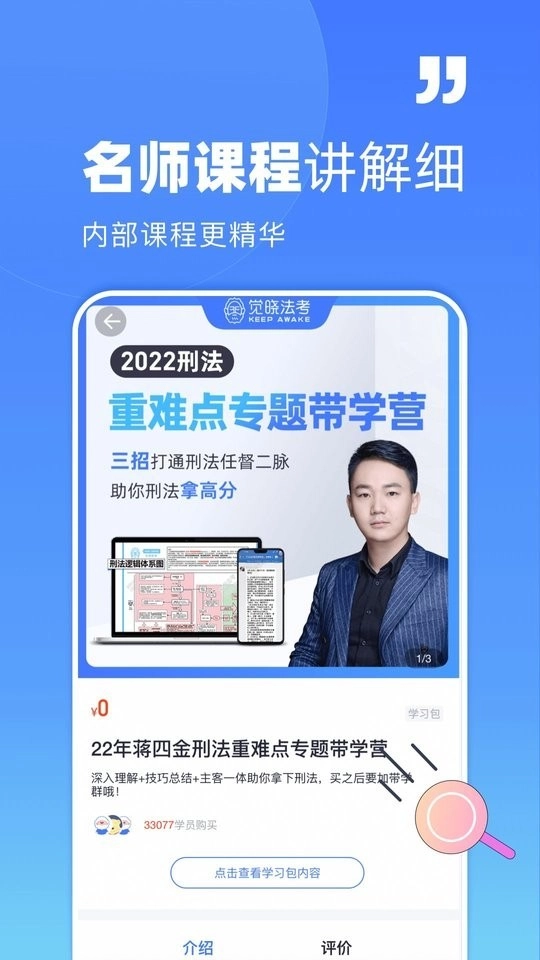 觉晓法考是一款专业的法考学习备考工具,它助力知识基础差的法考考生有效学习,快速提升学习水平与效率。这里有法律基础课程、机考刷题、陷阱记忆等多样辅导内容,知识丰富,能帮找各类法律资料。软件丰富,汇聚张翔、罗翔、魏建新等海量名师力量,其优质直播课助你轻松过法考。