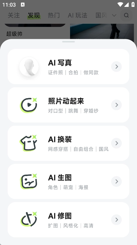 1、在首页,你会发现诸多功能,我们选取热门的AI生成图片。