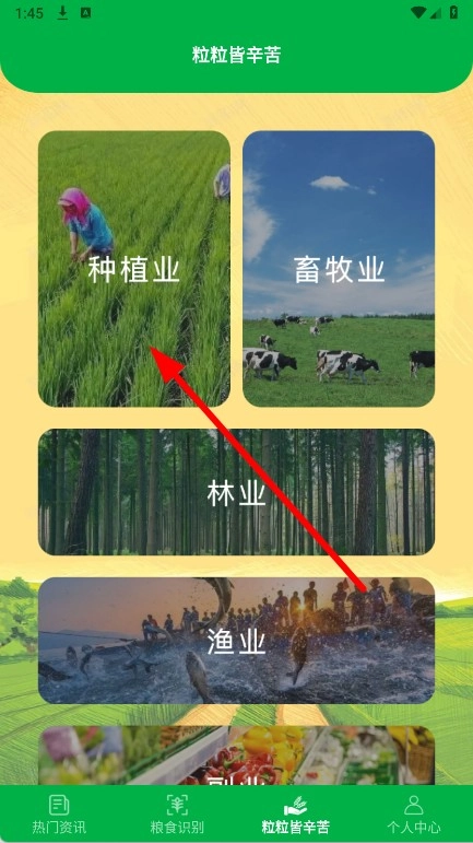 2. 在“粒粒皆辛苦”页面,点击种植业板块,即可进入种植业问答界面。