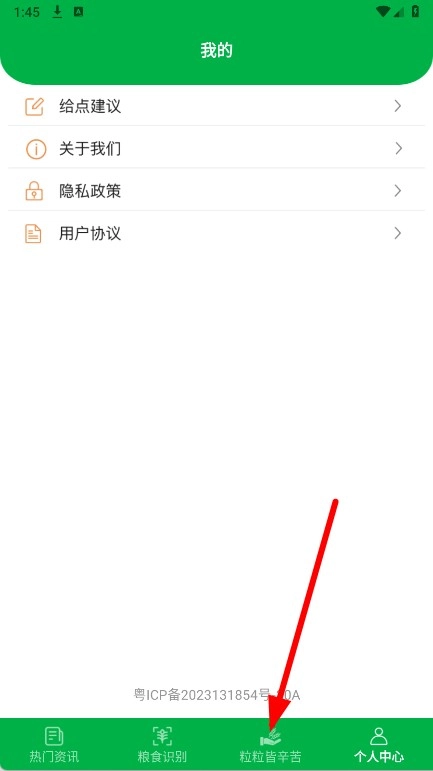 1、开启后,点击底部导航栏中的“粒粒皆辛苦”选项。