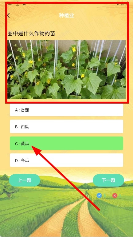 3、于种植业问答界面,依据所展示的作物图像挑选正确答案。