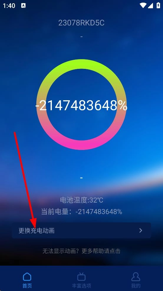 1. 于首页处,点击“更换充电动画”,随即进入充电动画选择页面。