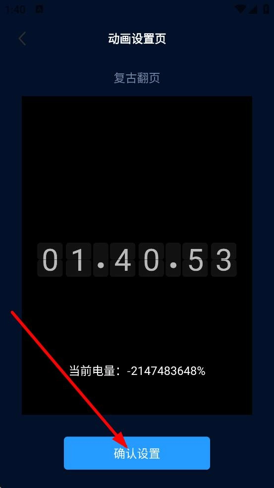 3、选中动画后,于动画设置页面,点击确认设置选项,即可完成充电动画的设置。