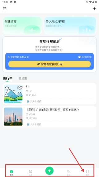 1. 开启旅行行程规划类的应用,轻点底部的“我的”选项,从而进入个人中心页面。